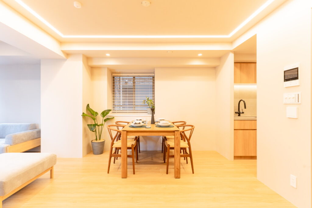 キッチンの先はダイニングスペースとしてお使いいただける出窓のある空間。