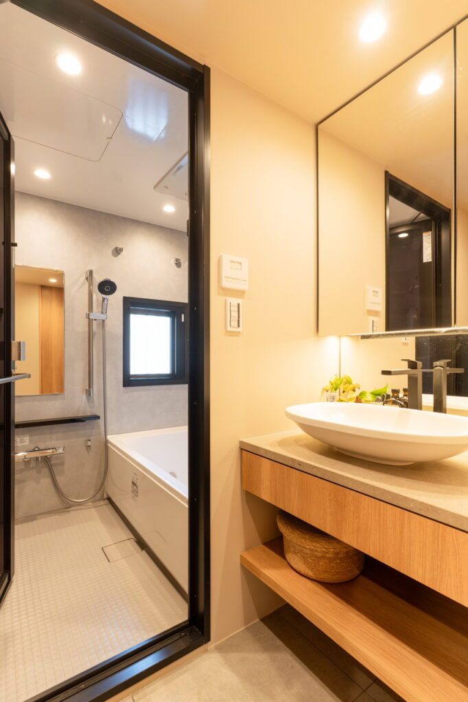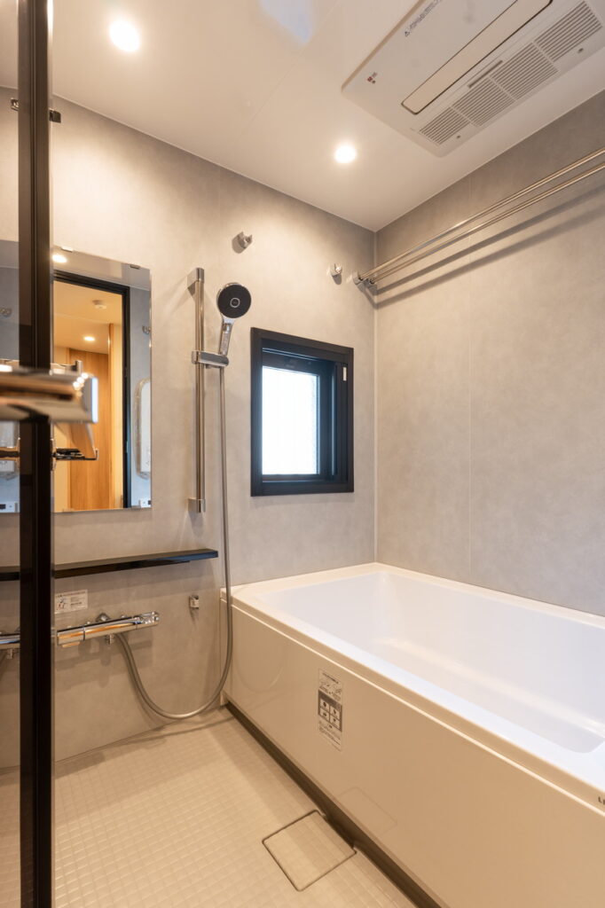 落ち着きのあるスタイリッシュなバスルームは、暖房・涼風・換気・乾燥機能付きで1年中快適です。