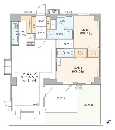 広いテラスと専用庭は約13㎡(約8帖)。お好きな植物やガーデンチェアを置いて、アウトドアリビングとしてお使いになるのはいかがでしょうか?